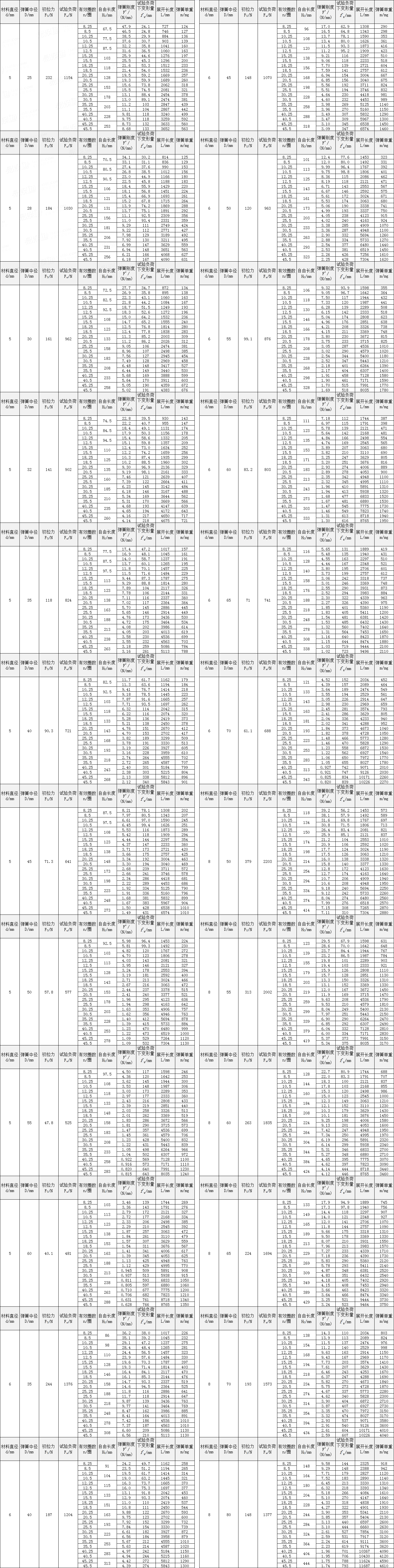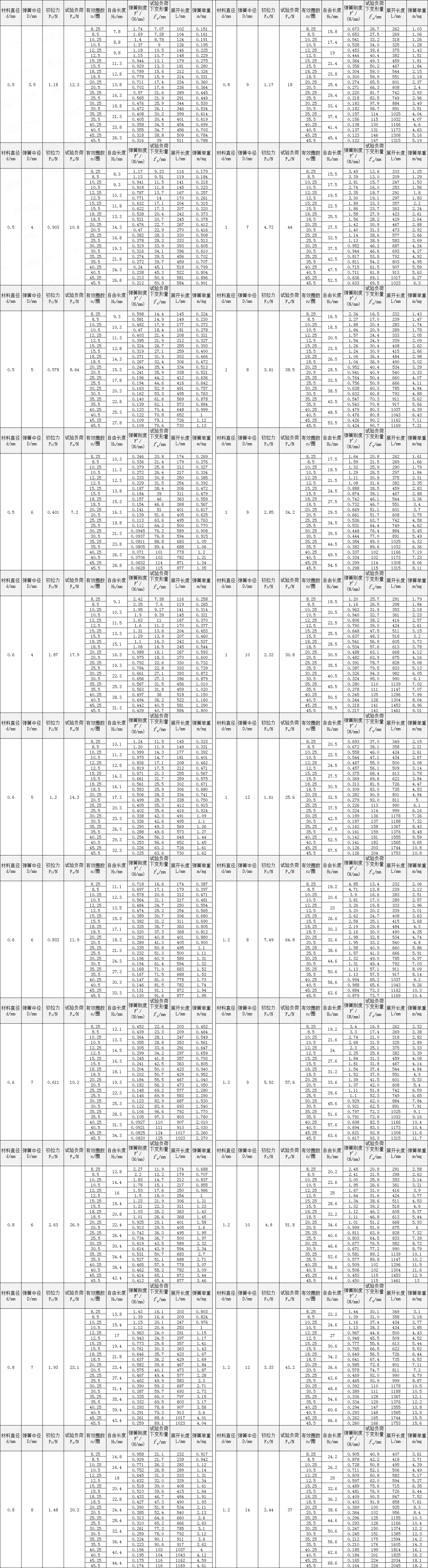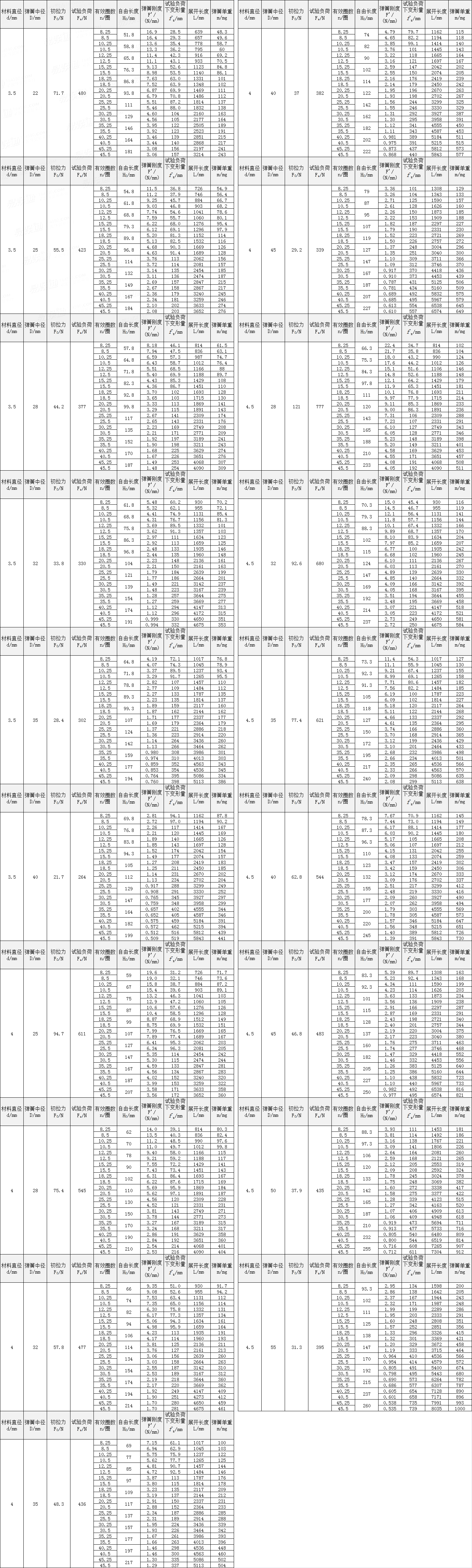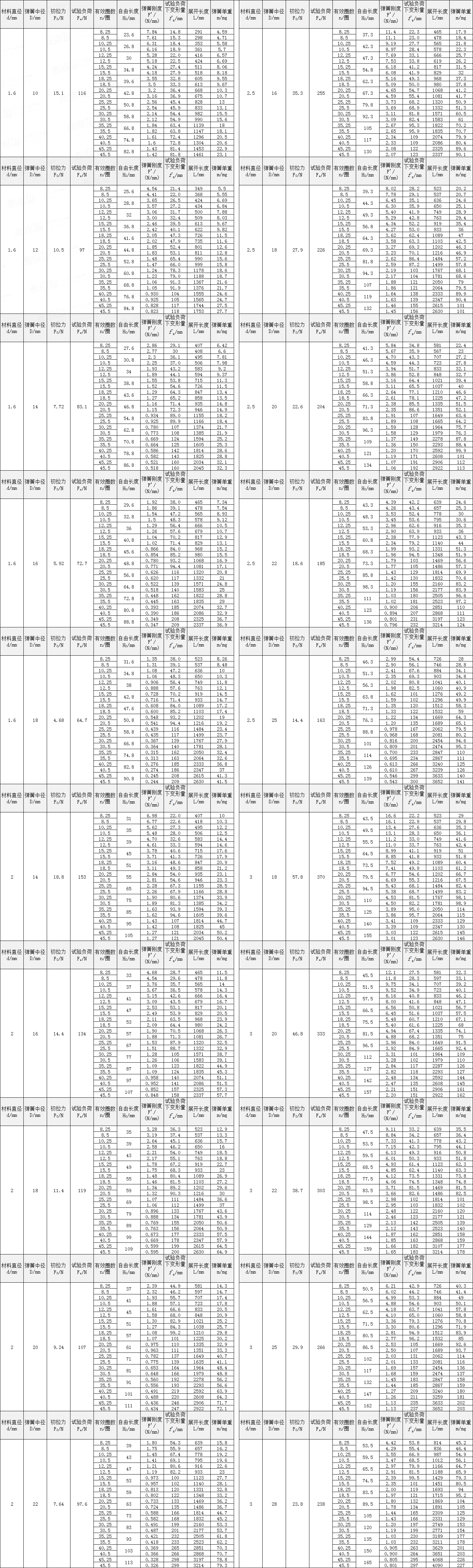 圓柱螺旋拉伸彈簧尺寸及參數 (圓鉤環型) Cylindrically Coiled Tension Spring Dimensions and Parameters (Ring Profile with Hook) |
