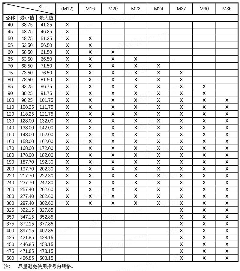 | ①,螺紋長度 b: 當 L ≤ 125 mm 時,b = 2d + 6 mm ; 當 125 < L ≤ 200 mm 時,b = 2d + 12 mm ; 當 L > 200 mm 時,b = 2d + 25 mm 。 |