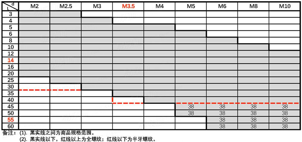 | 選擇規格尺寸 點擊↓ M2 M2.5 M3 (M3.5) M4 M5 M6 M8 M10 括号内尺寸為非優選