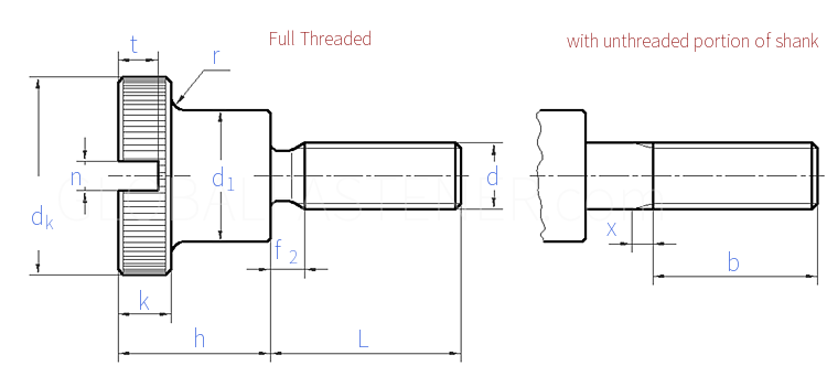 Reduced Shanke Bolts and Screws with Coarse Thread - Knurled Thumb Screws, High Type